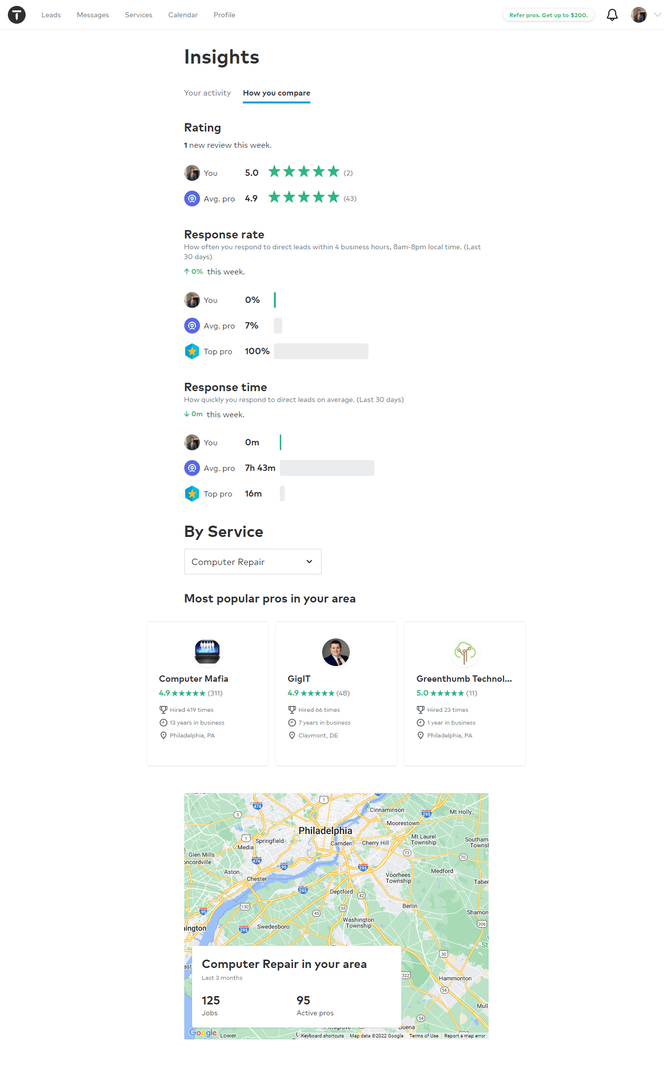 After using Thumbtack just briefly, it does not seem to favor digital services and perhaps will have much better success if you are offering a blue collar job service like Handymen, Painters, Plumbers, Photographers and things of that nature; it seems to me that's their perfect customer.