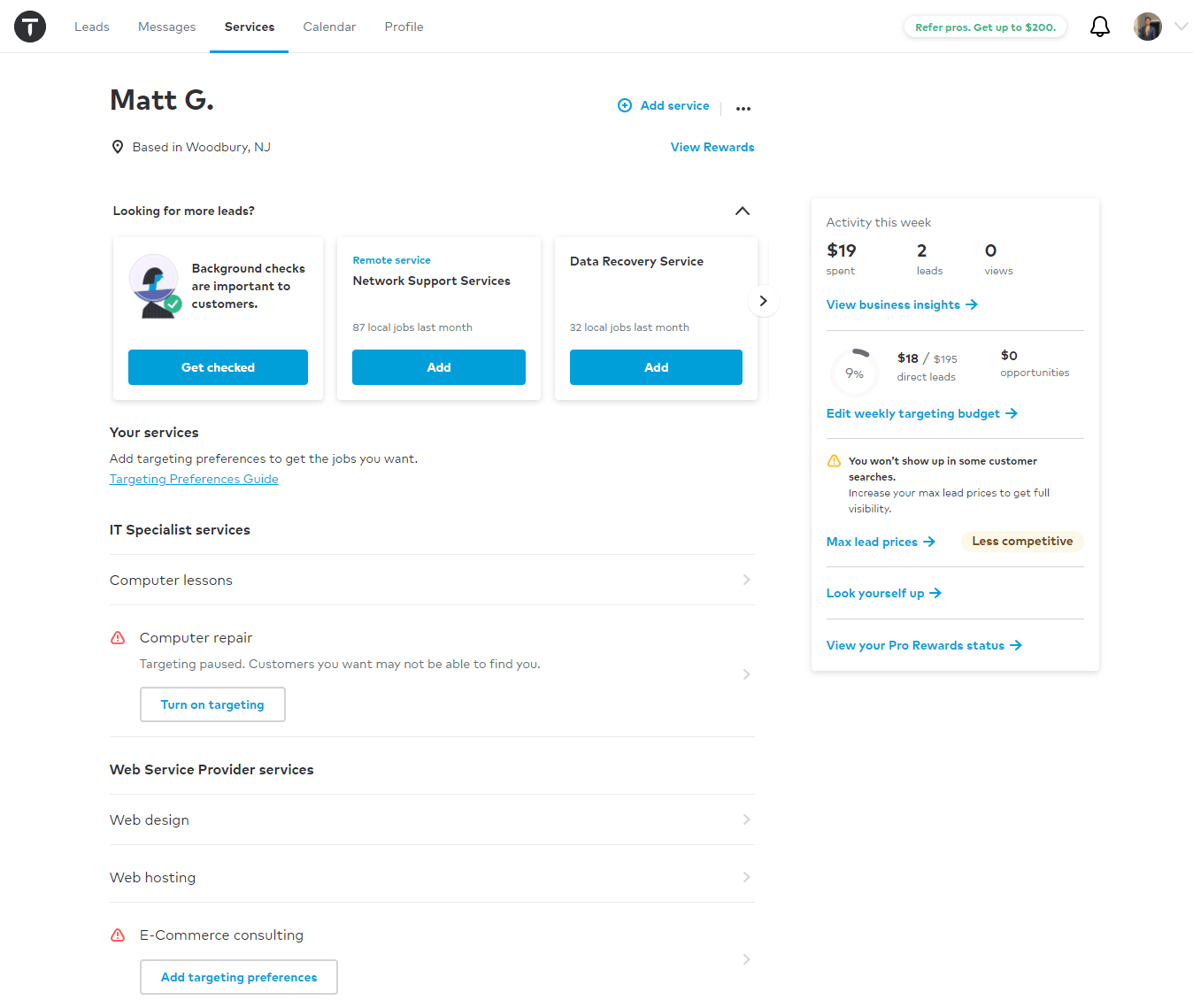 - Depending on service, I have local only leads and some other are remote. Typically I'd rather work with someone within a bicycle ride away.