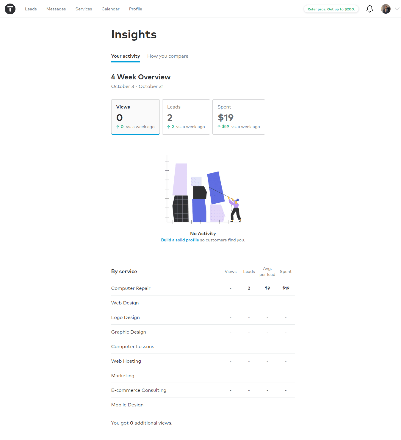 After using Thumbtack just briefly, it does not seem to favor digital services and perhaps will have much better success if you are offering a blue collar job service like Handymen, Painters, Plumbers, Photographers and things of that nature; it seems to me that's their perfect customer.